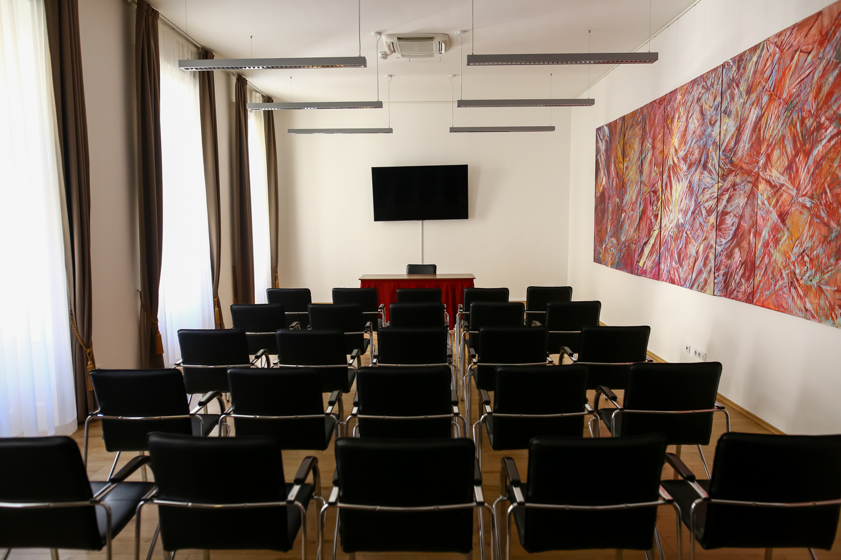 A terem előtt található folyosó igény szerint berendezve fotelekkel, könyöklőkkel tökéletes helyszín a rendezvény résztvevőinek fogadására, welcome drinkre, a vendégváró falatok elfogyasztására vagy akár kisebb létszámú állófogadására.